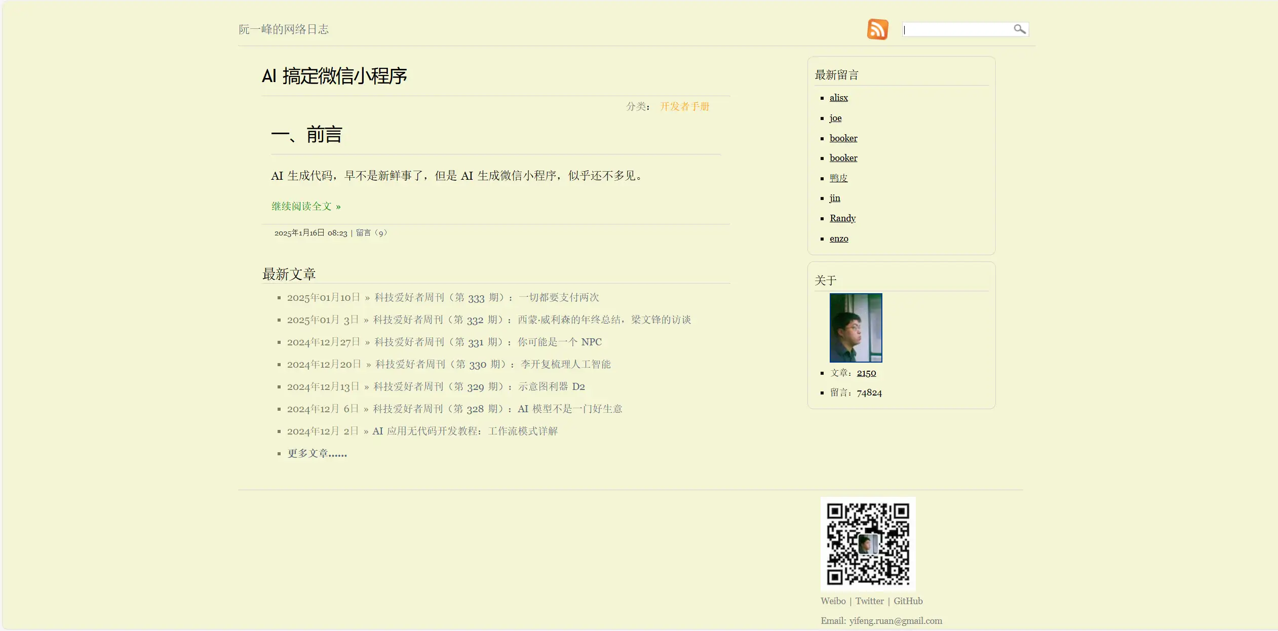 阮一峰的日志网站,分享技术文章与思考,内容丰富实用