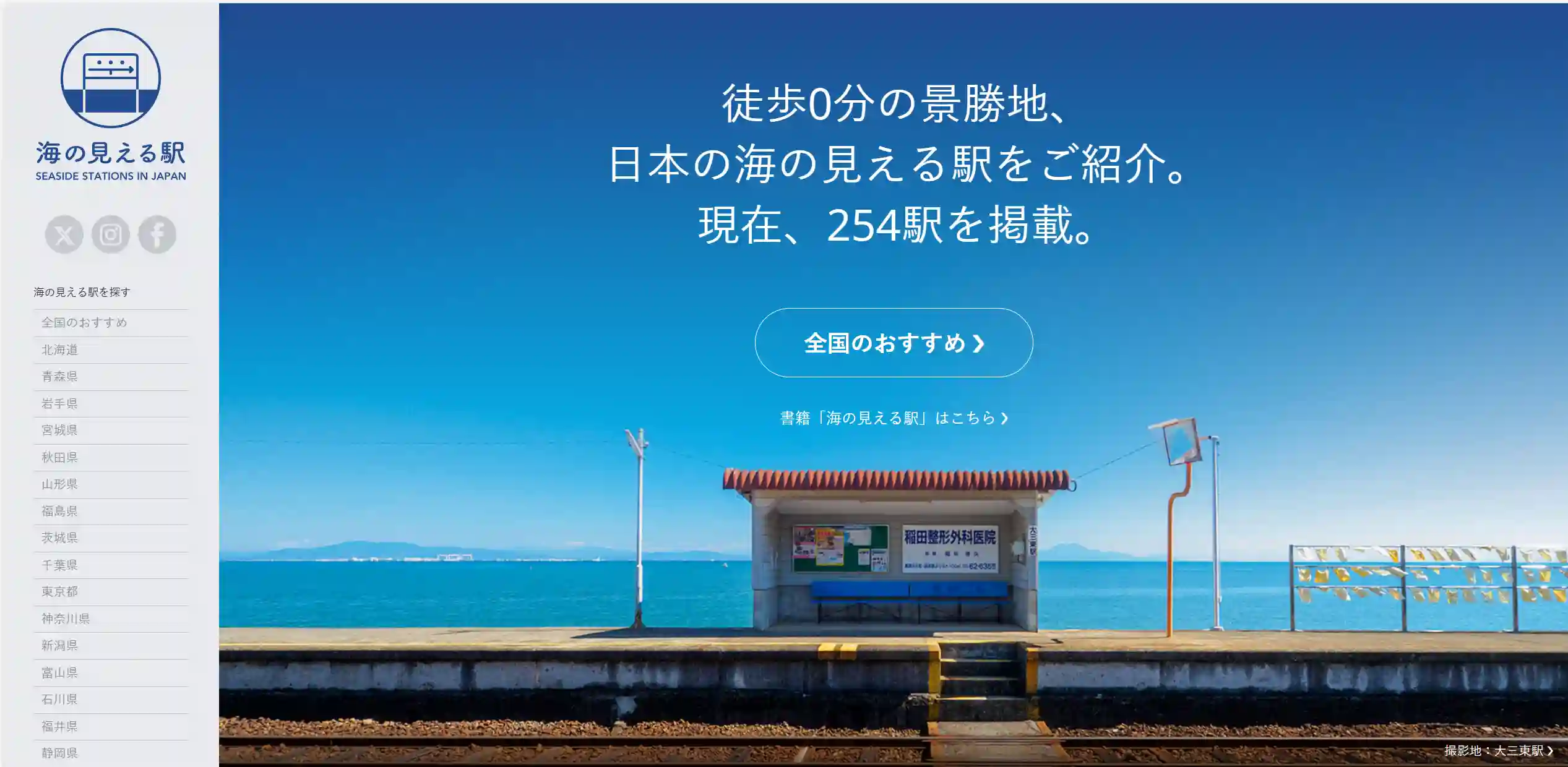 日本作为一个岛国,有很多靠海的车站。1991年出生的村松拓,从13岁那年的夏天开始,就独自出发,坐上电车去寻找海边的车站。在15岁那年他建立了名叫「海の見える駅」的网站,收集了日本47个都道府县中能看见海的“海边车站”,思考到枯竭的时候看看这个网站,疲惫也能一扫而光