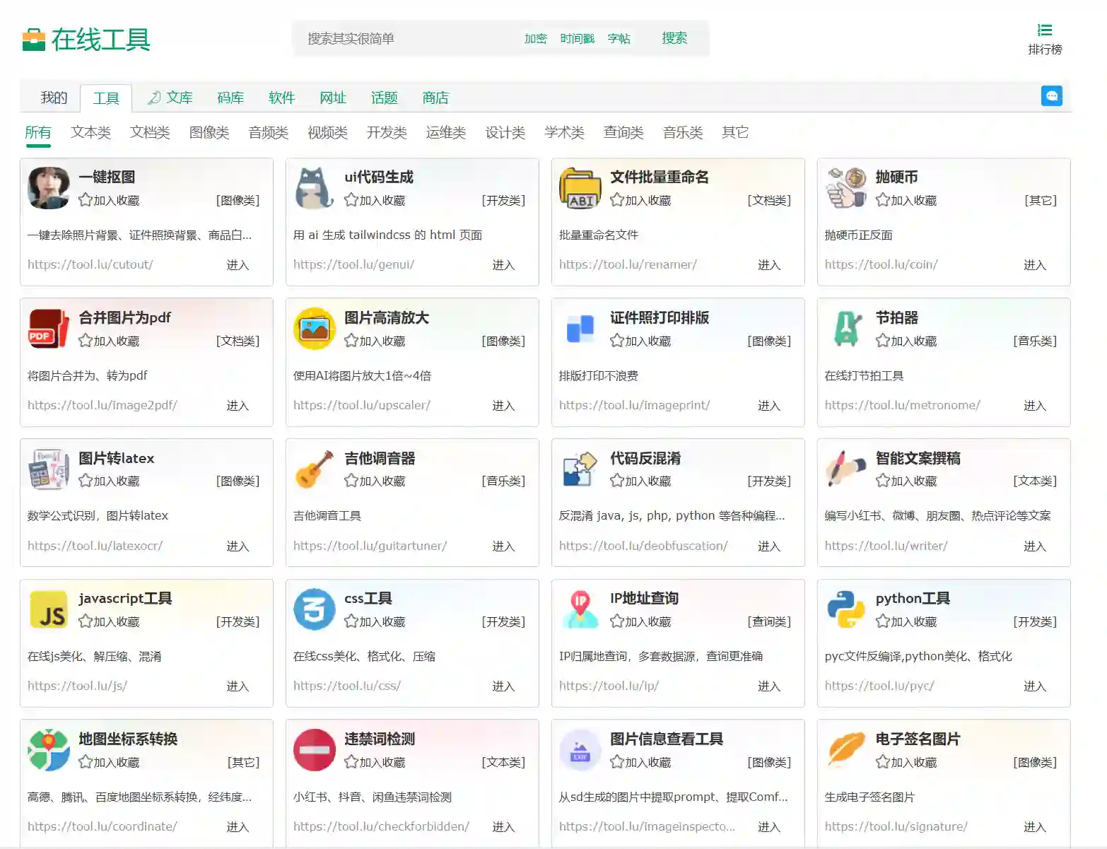 里面有很多很有意思的小工具,比如一键抠图、二维码生成、摩斯电码、歇后语、favicon在线制作、颜色转换等,也有可以在线运行代码的工具