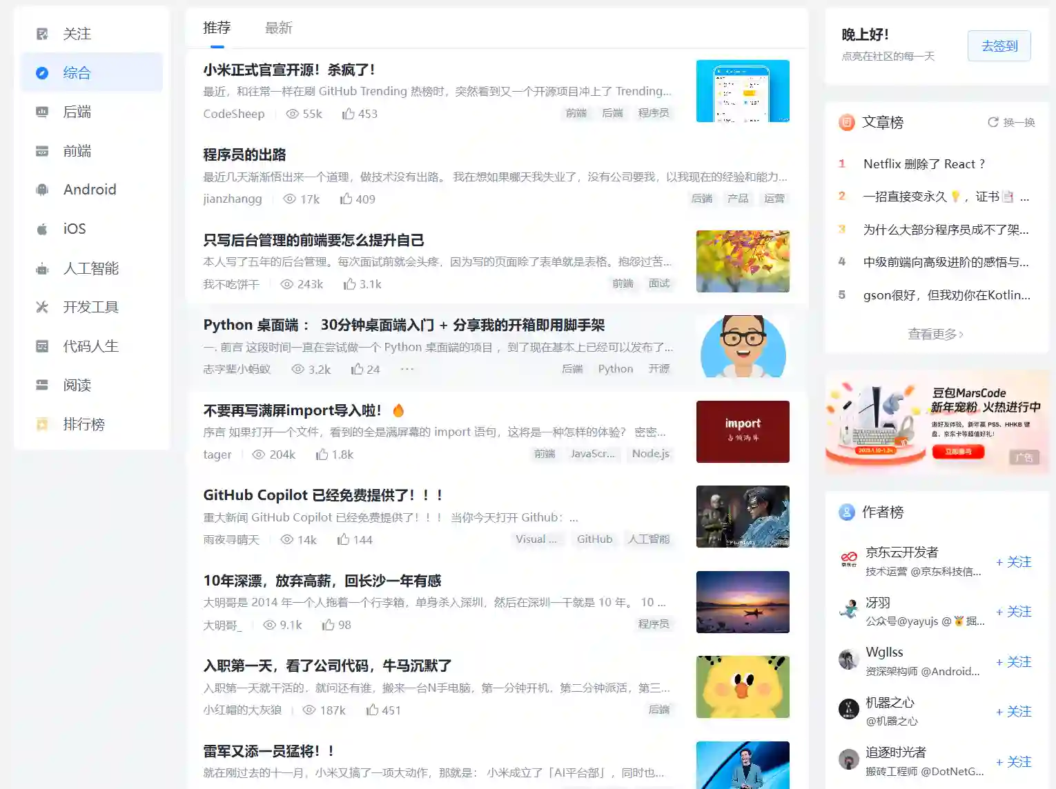 掘金是一个帮助开发者成长的社区,是给开发者用的Hacker News,给设计师用的Designer News,和给产品经理用的Medium